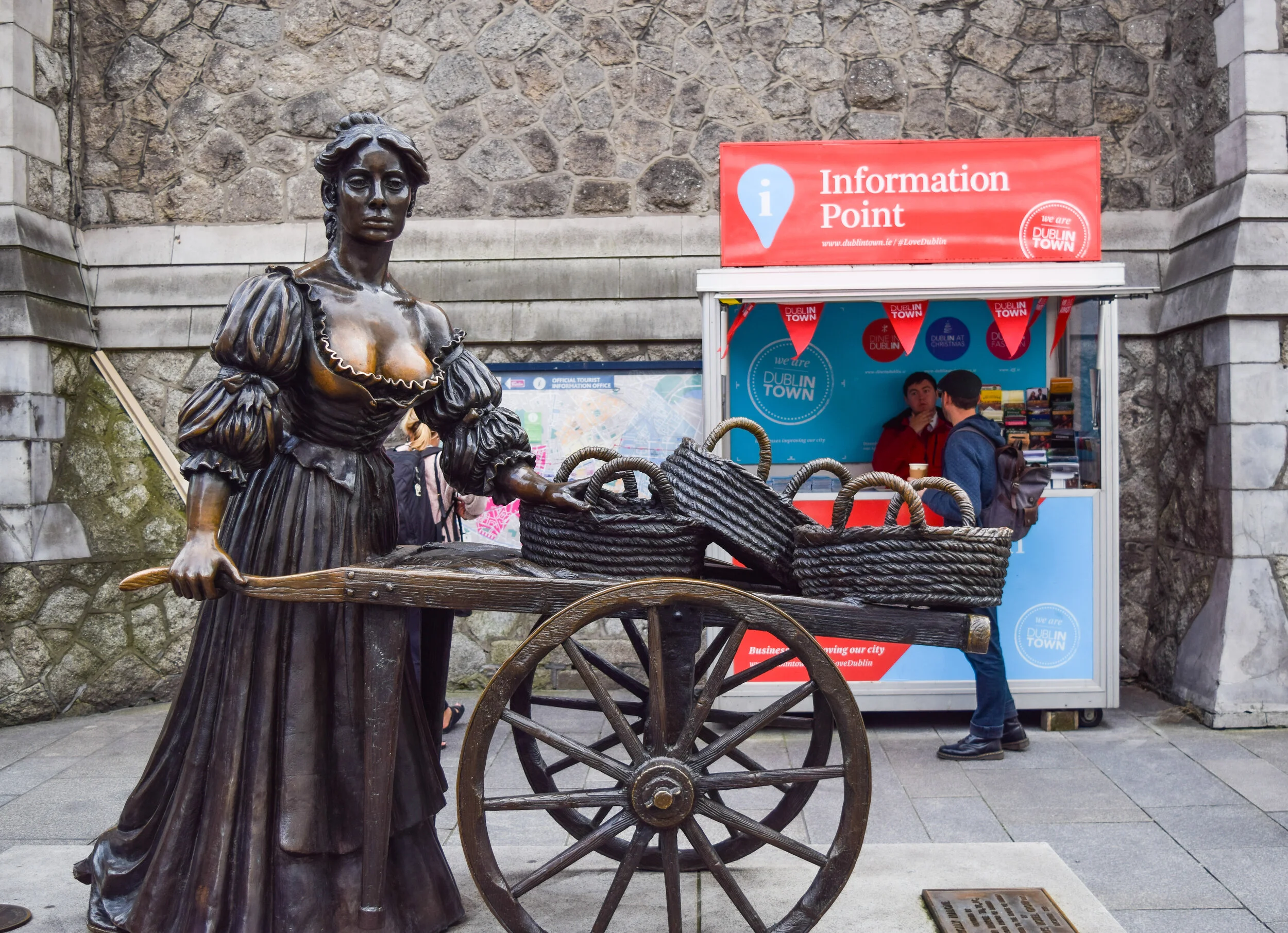After the Trinity College tour, we were ready to get back on the bus and head off to our next stop. But as we were walking to the bus stop, we were just so enthralled with the city that we decided to walk around a bit and explore. Just past our bus stop was a street that led uphill on our left. It led to a beautiful church. As we got closer, I saw there was a statue of a very busty woman pushing a cart with baskets in it. I realized it is the ever-famous Molly Malone, the star of Dublin’s unofficial anthem. I never heard of her prior to arriving in Dublin, but you are guaranteed to hear someone whistle or sing the tune while walking the streets. As for me, our tour bus driver treated us to the song when we first got on the bus. He had a lovely voice, too.